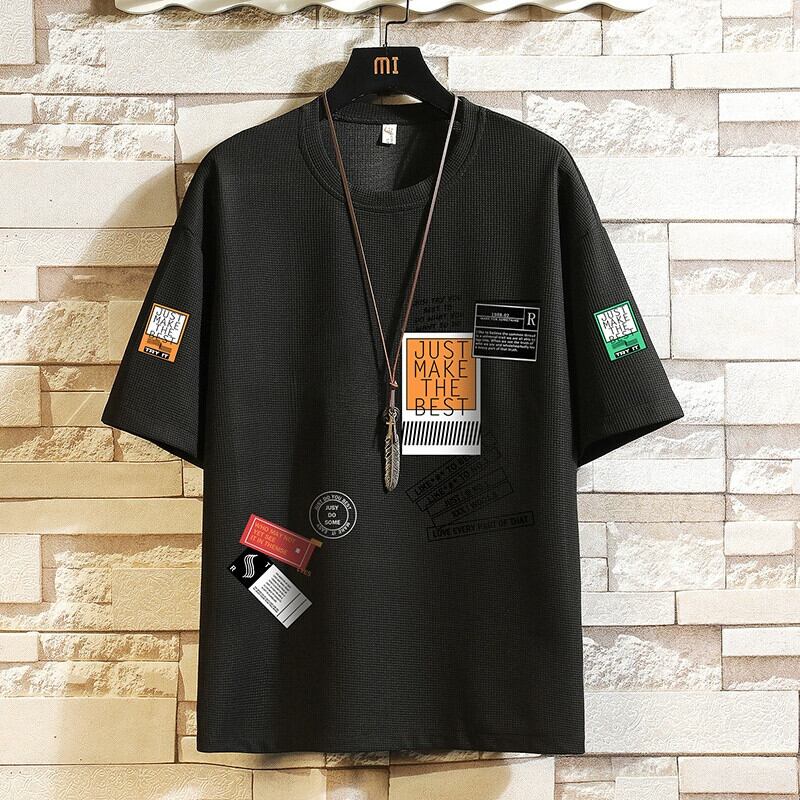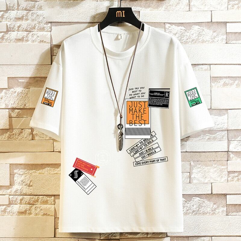 ワッフルメンズ半袖Tシャツ夏アイスシルククール半袖ボーイズデザインニッチプリント万能TシャツT サマー 夏物 undao7398996268