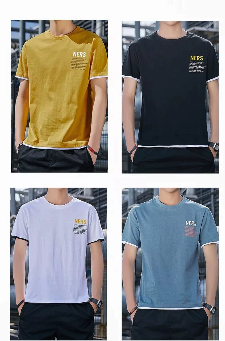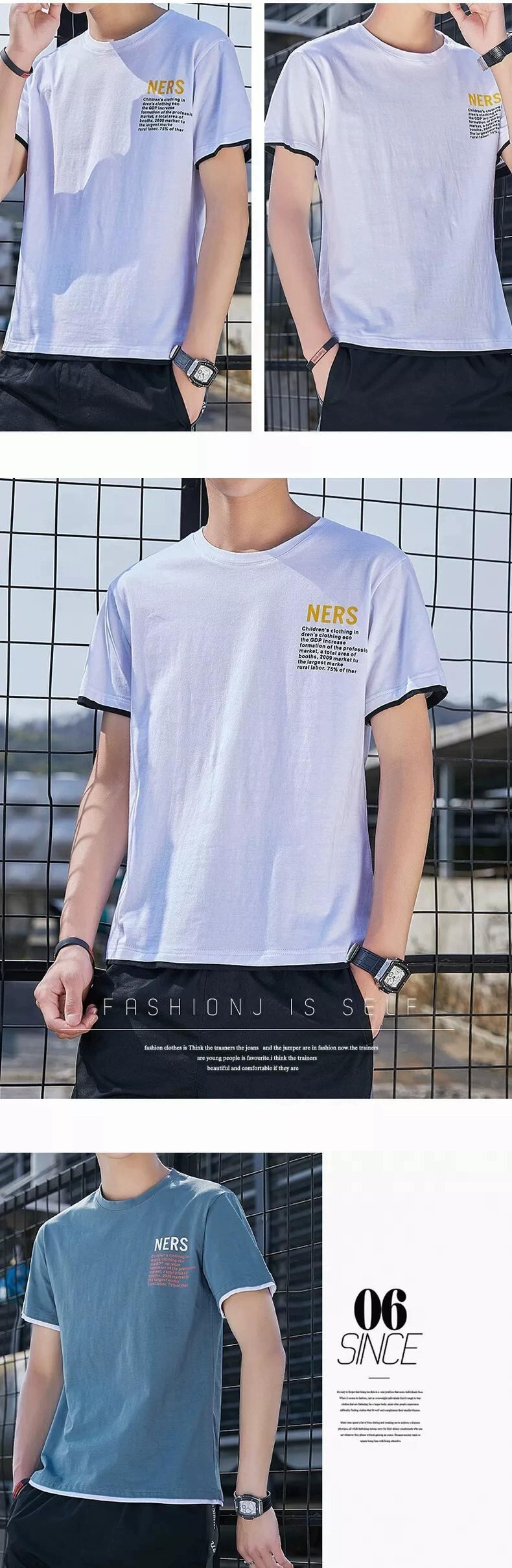 トレンディなブランド tシャツメンズ 2023 新しい半袖夏服トップス純粋な綿ルーズブルー tシャツ半袖ボトシャツ コットン サマー 夏物 ピュア undao13684128726
