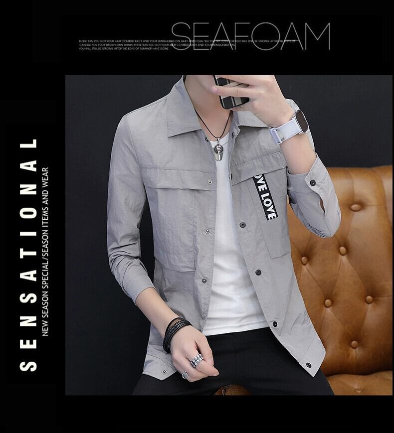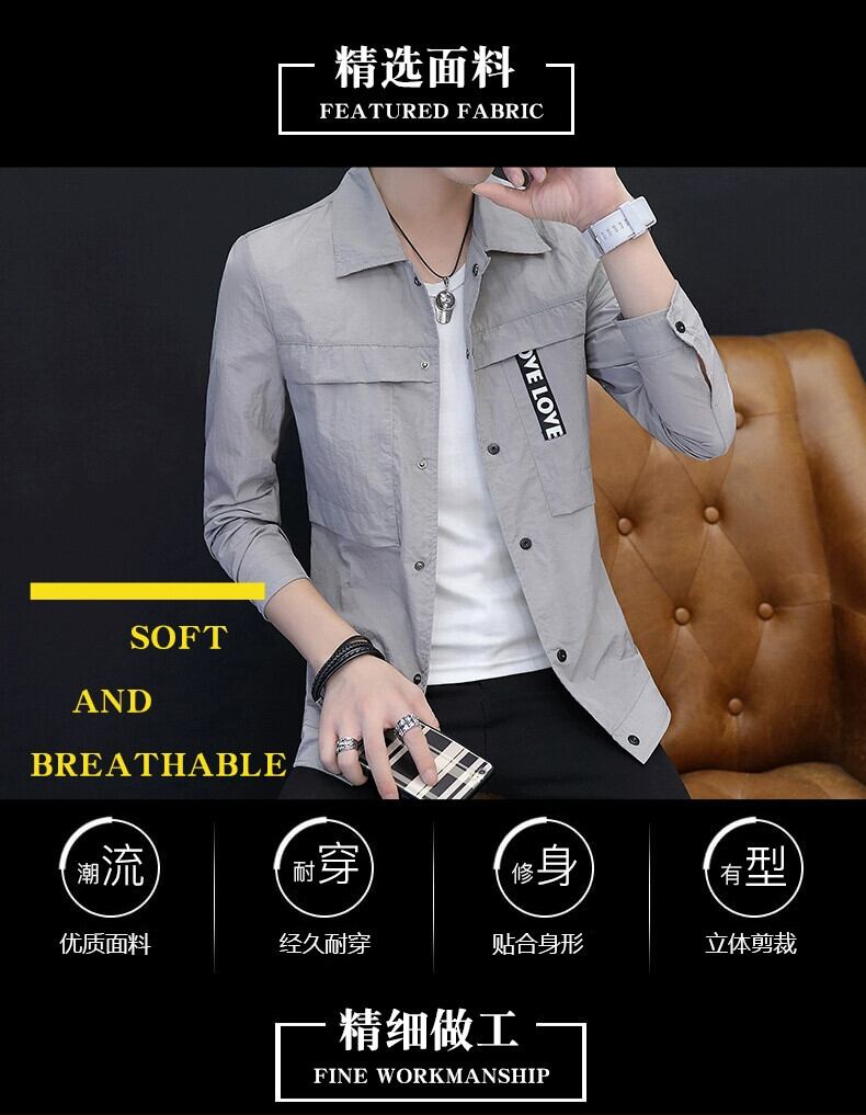 2023 アイスシルク速乾性日焼け止め夏メンズジャケットラペル薄いコート屋外通気性日焼け止めアウターウェア サマー 夏物 undao78818668672