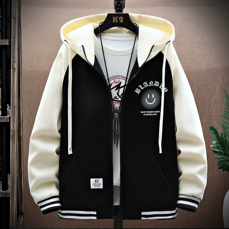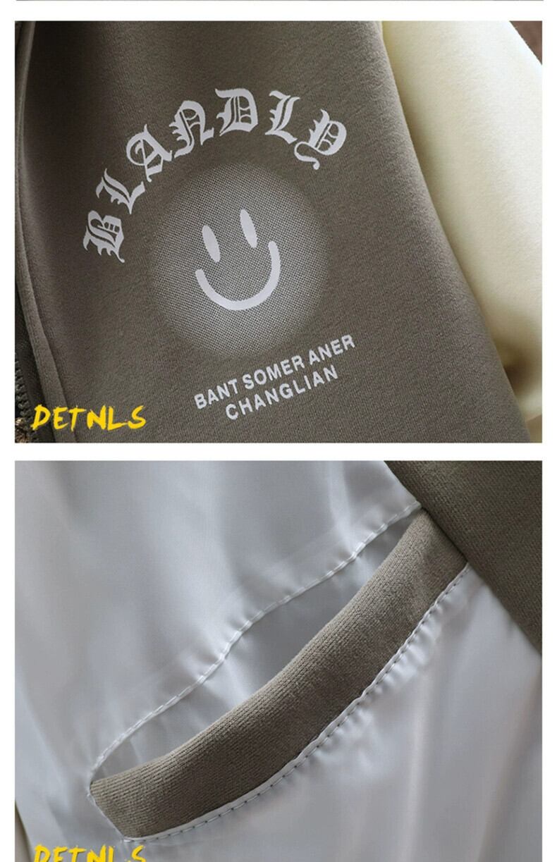 メンズコート春秋フード付きジャケットメンズトレンディブランドユーススマイリーフェイスプリントラグランスリーブ薄手カーディガンスウェットシャツ スプリング 春物 オータム 秋物 undao84962839287