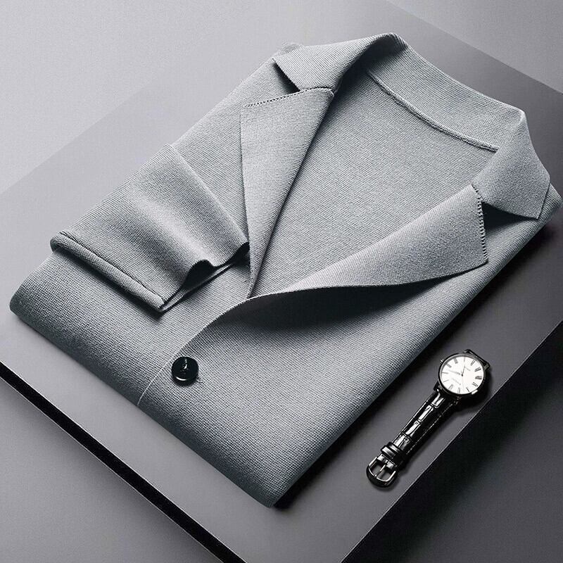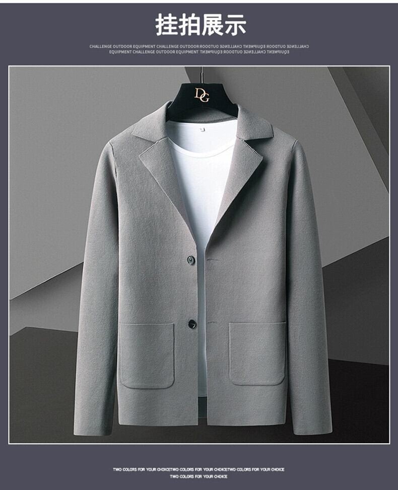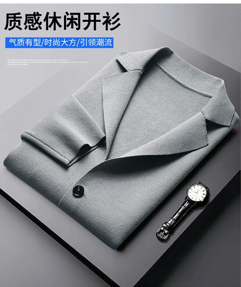 春夏メンズ薄手ニットカーディガンスタイルビジネスカジュアル小さめスーツラペル無地ジャケットジャケットメンズトップス スプリング 春物 サマー 夏物 ソリッドカラー undao49926291904
